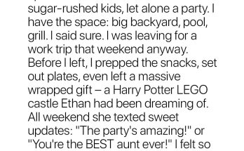When my sister begged to use my house for her son’s birthday, I said yes. She needed space, and I’d be out of town. I even left snacks and a …