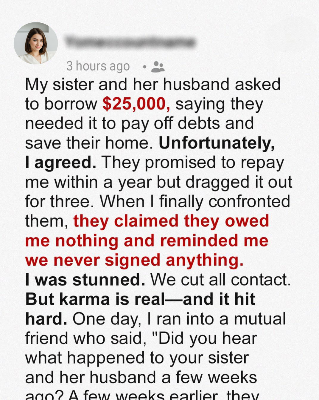 Months passed and I grieved what I’d lost… not the money, but the illusion that my sister and I had something real.