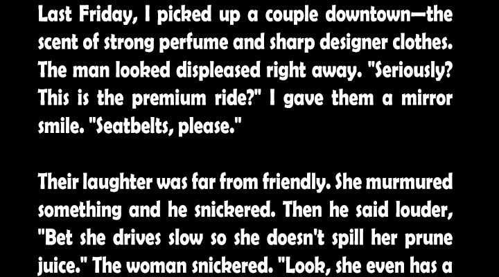 It was just after 9:00 p.m. downtown when they climbed into my back seat. The guy had slicked-back hair and wore a fitted blazer that probably cost more than my car payment. His girlfriend was tall and polished, wearing perfume I couldn’t have afforded even when we owned the store.