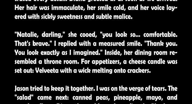 “Natalie, darling,” she cooed, her gaze sweeping over me from head to toe. “You look so comfortable. That’s brave. Not everyone could pull off such a… practical look before a big event.”