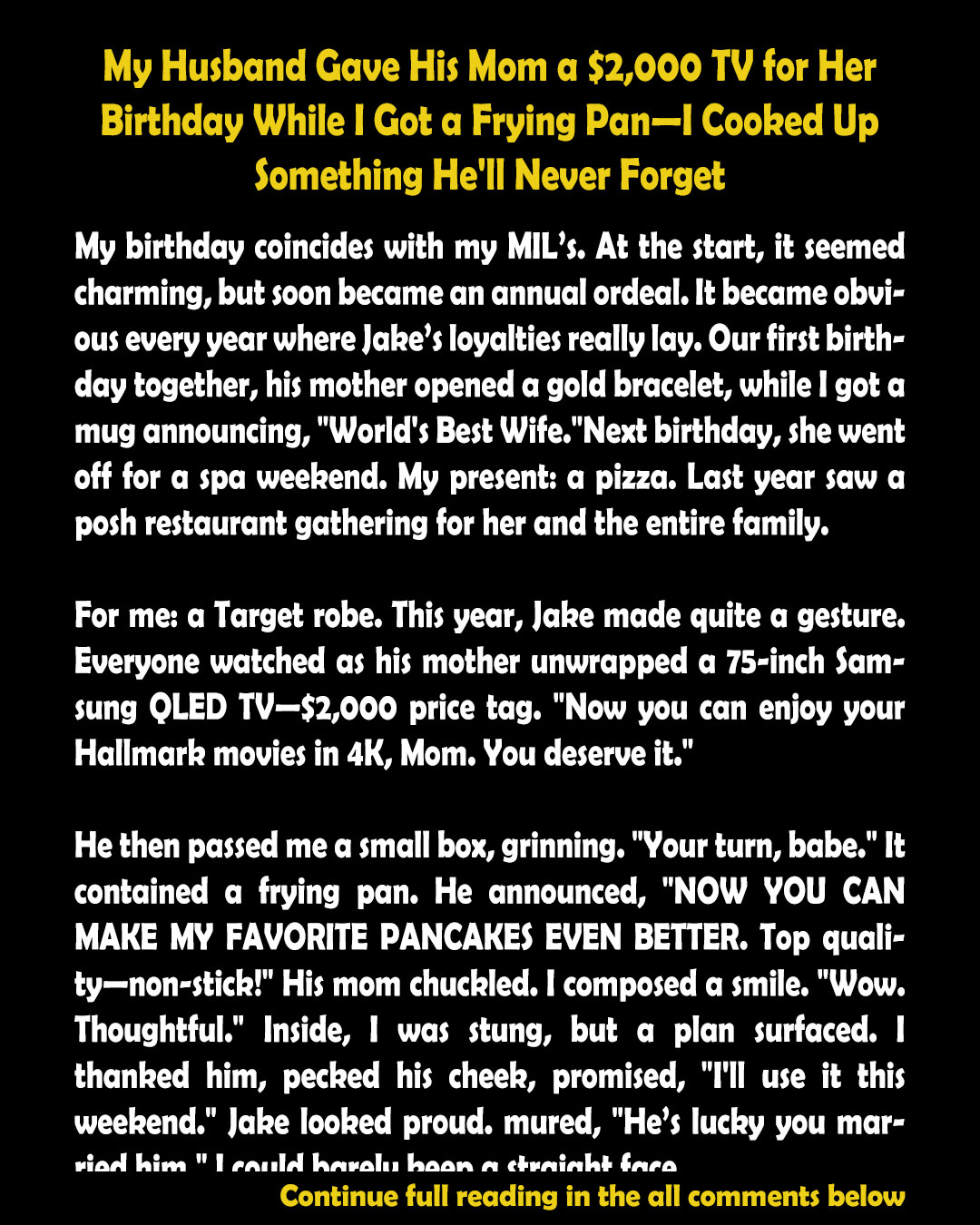 When Emily opened her birthday gift and found a frying pan while her mother-in-law unwrapped a $2,000 television, something inside her finally snapped. Feeling humiliated, she came up with a plan that would leave everyone speechless.