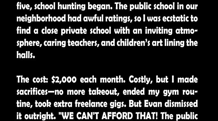 My husband said private school wasn’t in our budget. But when I discovered who he was secretly supporting, it uncovered a part of his past I never knew existed.