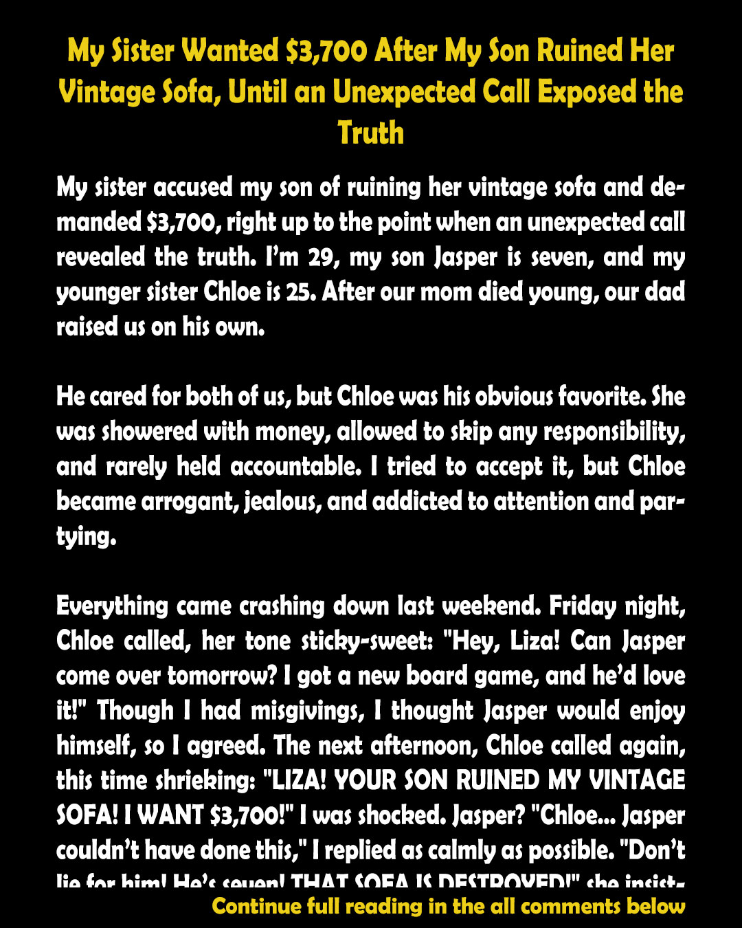 My Sister Wanted $3,700 After My Son Ruined Her Vintage Sofa, Until an Unexpected Call Exposed the Truth