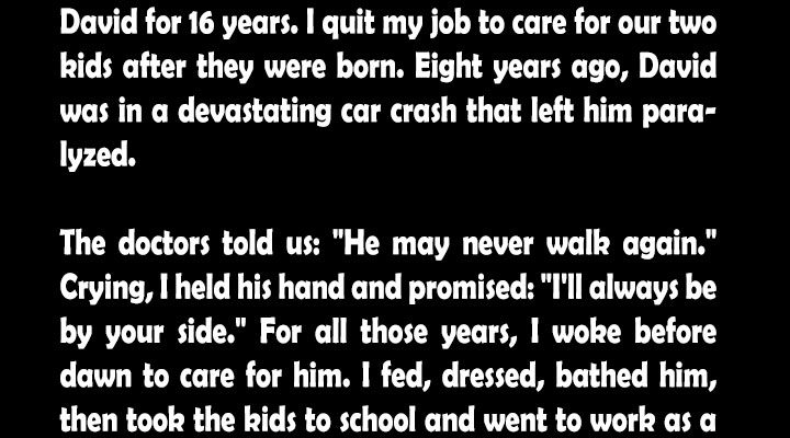 At that point, I felt like the floor had dropped out from under me. David, my strong, ambitious husband, would never walk again? It seemed impossible.