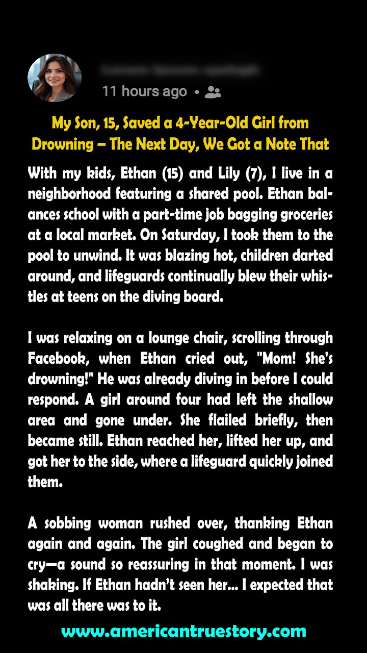 There was no mistaking the urgency. My gut told me this was something we couldn’t brush off. I didn’t say anything about the note until after I made dinner. Ethan sat back in his chair, his half-full glass of lemonade sweating on the table.
