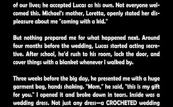 When my 12-year-old son crocheted my wedding dress, I thought it was the most beautiful gift imaginable. But when my mother-in-law publicly mocked him, calling it a “tablecloth” and humiliating …