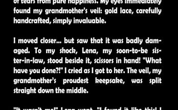 The gold lace of my grandmother’s veil was shredded across the vanity, and my future sister-in-law was standing there — scissors in hand. It was supposed to be the happiest …